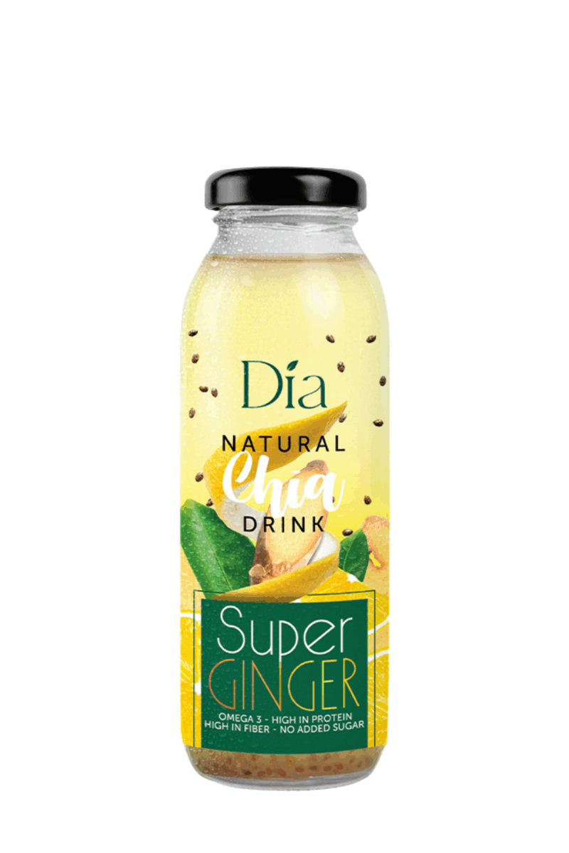 Το Chia Dia Super Ginger ενώνει τη δύναμη των σπόρων chia με την πικάντικη ένταση του τζίντζερ και τη δροσιά του λεμονιού. Πλούσιο σε φυτικές ίνες, πρωτεΐνη και αντιοξειδωτικά, ενισχύει τη χώνευση και την αίσθηση ευεξίας, ενώ προσφέρει μια μοναδική γευστική εμπειρία. Ένα ρόφημα με χαρακτήρα που τονώνει και αναζωογονεί.